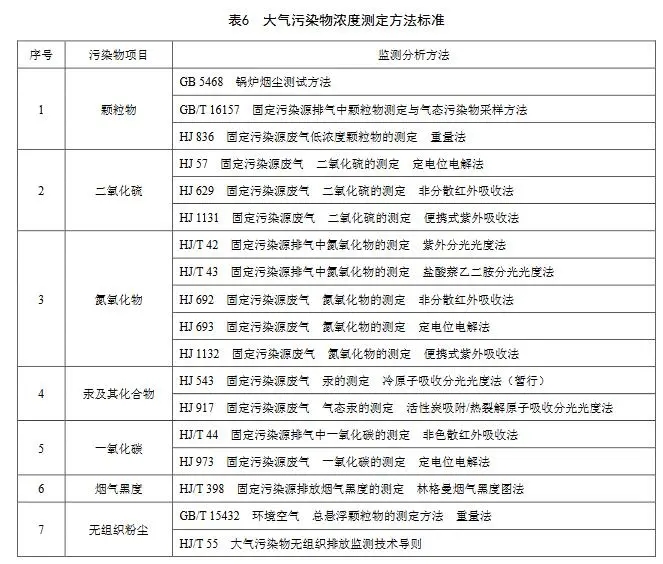 5.1.6對(duì)大氣污染物排放濃度的測(cè)定采用表6列的方法標(biāo)準(zhǔn)。